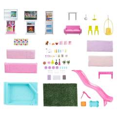 Genç hayaller Barbie Dreamhouse'a taşındığında, bu muhteşem oyuncak evi bir rüya eve dönüştürüyor! 3 feet uzunluğunda ve 4 metre genişliğinde olan Barbie Dreamhouse'un pek çok şaşırtıcı özelliği var. Üç katlı, bir carport (araba dahil değil) ve bir ev ofisi içeren dört oda, dört bebekle dolu bir çalışma asansörü, bir havuz, beş adet dönüştürücü mobilya, ışık, ses ve hoş bir köpek yavrusu da dahil olmak üzere 60'dan fazla ek aksesuara sahiptir. Hepsi dekore etmek için kullanılabilir, sahneyi ayarlayabilir ve pek çok öykü oynatabilir. Tak-çalıştır tasarımı, küçük eller hareket ettikçe parçaları hareket ettirmeye yardımcı olur. İç ve dış mekan düzenlemeleri için süslemeler ve mobilyalar her açıdan oyuna ilham veriyor, ve dönüşümler esnek eylem teşvik ederken anepe ranza haline döner, şömine bir ev ofis haline gelir. Bir açık hava yiyecek standı ve fırın arkada bir barbekü barındırır. Işıklar ve sesler daha da keyifli dokunuşlar ekler ocak tava ile cızırdar ve çaydanlık ıslık çaldığında bir ses çıkarır.