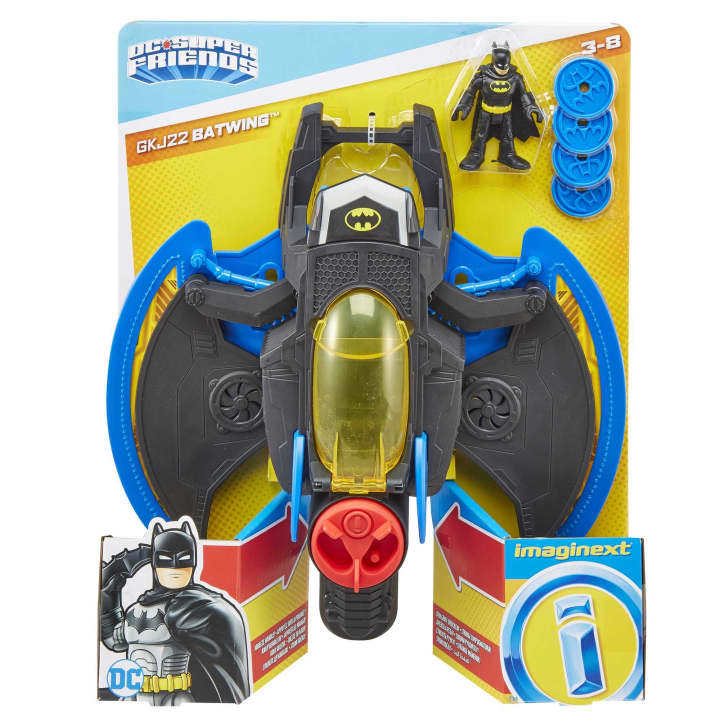 Süper Kötüler saldırdığında Batman™, Imaginext® DC Super Friends™ Batwing ile göklerde onları bekliyor olacak! Figürü uçağın kokpitine yerleştir ve kanatları açmak için bastır! Süper Kötüler'i gördüğün anda diskleri fırlatmak için güç düğmesini çevir. Kötü adamlar kaçacak delik arayacak! Gotham City™ sayende güvende... Imaginext® Maceraları Hayal Et!™ (Diğer figürler ayrı olarak satılır.)
