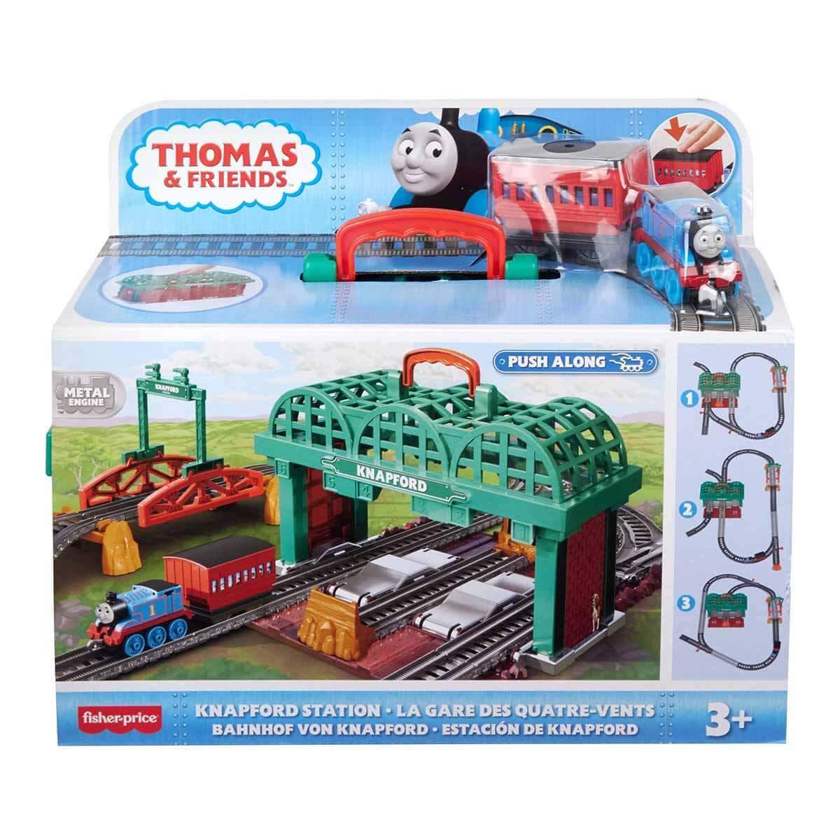 Knapford İstasyonu tren seti ile minik makinistiniz, Thomas'ın bu özel yolcu vagonundaki yolcuları son durağa bırakmasına yardımcı olabilir. Tepesine bastırıldığında yolcu vagonu yolcularla dolar ve eğlence başlar! Oyun saati bittiğinde istasyonu, kapılarını kapatıp saklama kutusu olarak kullanabilirsiniz. Üst kısımdaki taşıma kolu sayesinde çocuklar, en sevdikleri lokomotifi raylarıyla birlikte her yere taşıyabilir.